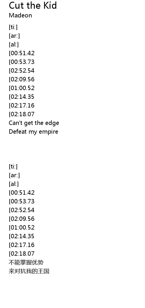 | [02:08.77][02:09.56][00:57.86] | Can't get the A |