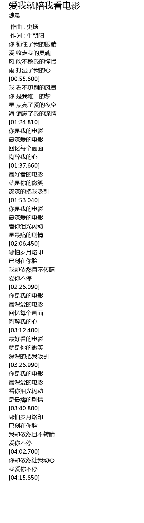 | [02:58.430] | nǐ shì wǒ de diàn yǐng |