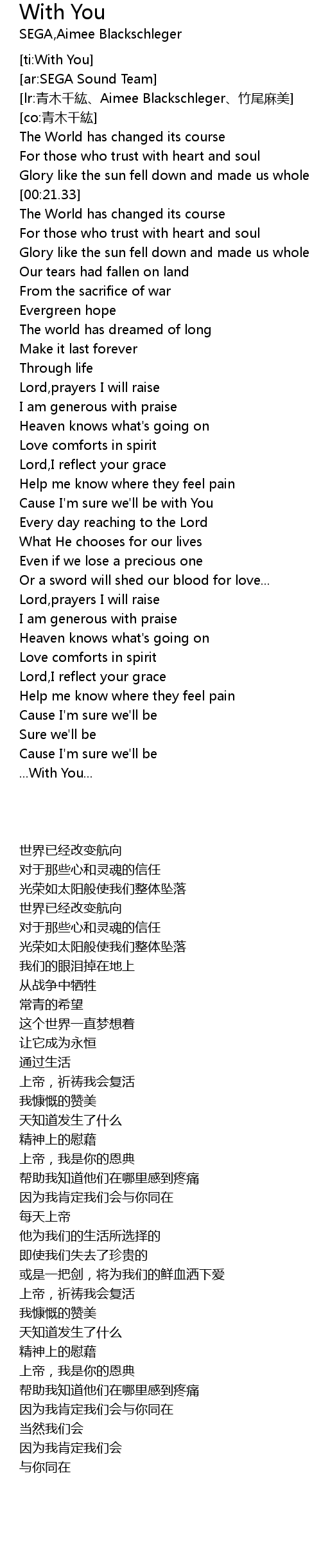 | [01:54.31] | Cause I' m sure we' ll be with You |