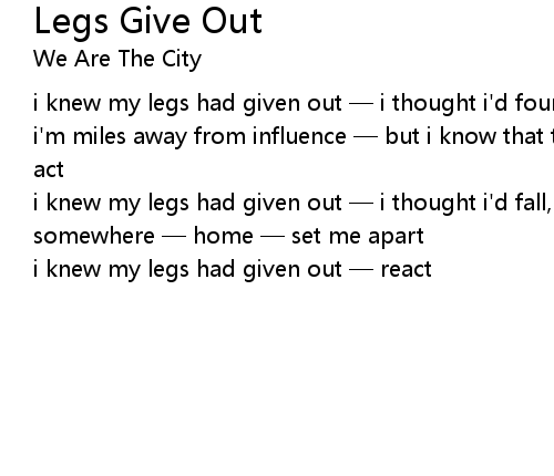 | i knew my legs had given out i thought i' d found a new way to react | |