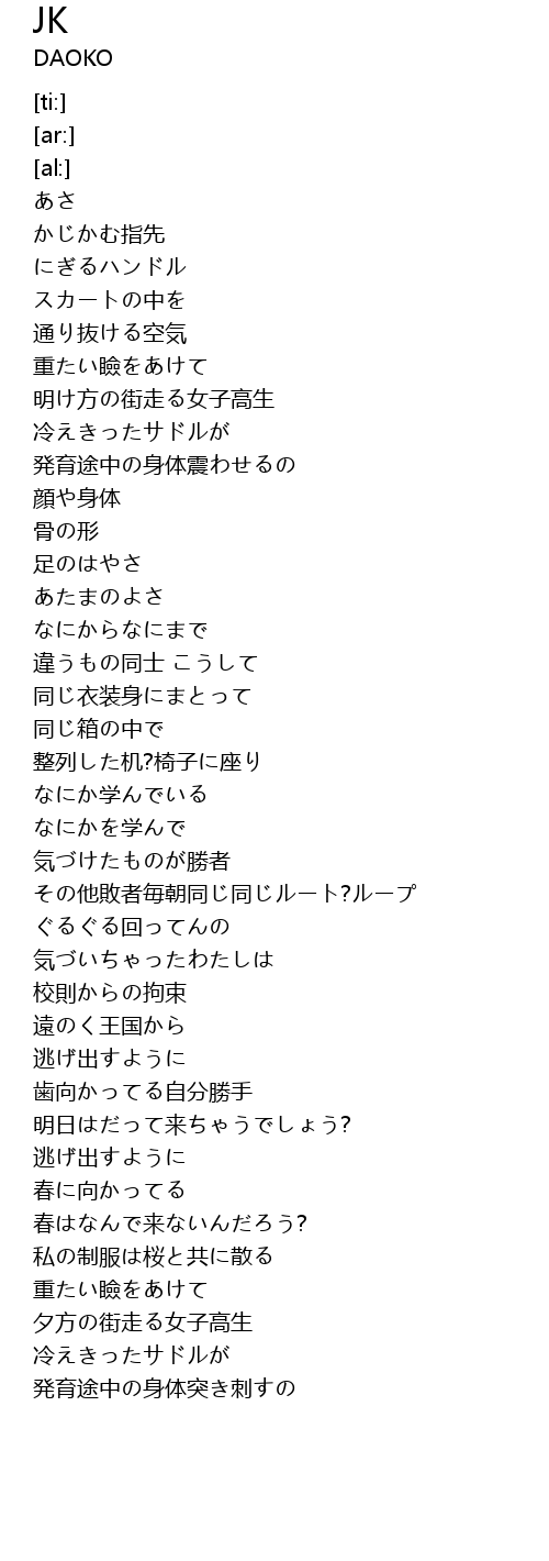 | [03:23.72] | 発育途中の身体突き刺すの |