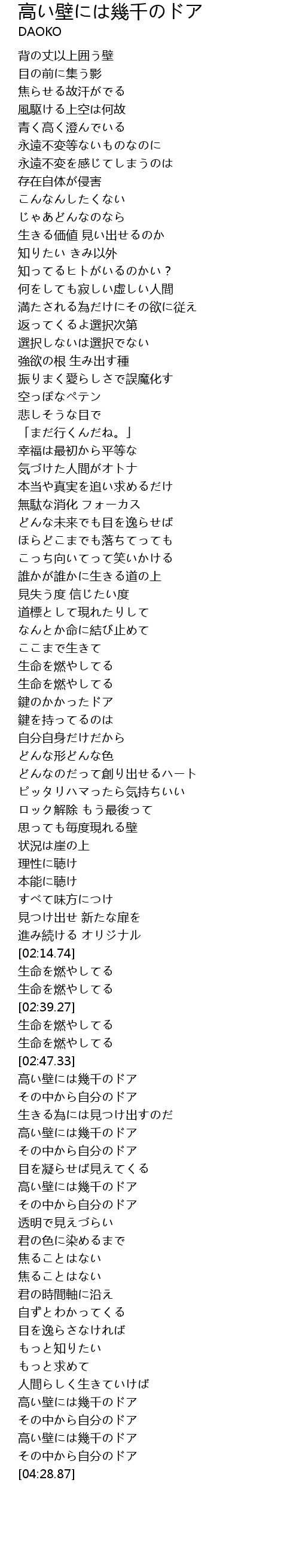 | [04:20.67] | 高い壁には幾千のドア |