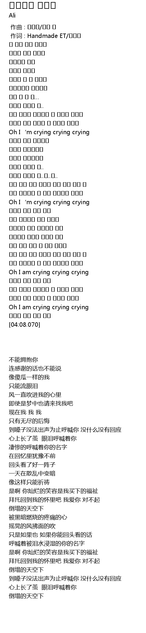 | [02:54.790] | 눈물 속에 잠겨 네 이름 부른다 |
