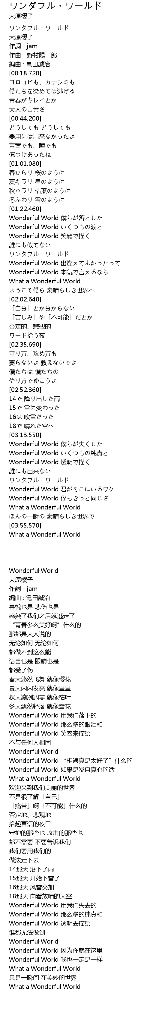 | [01:47.010] | Wonderful World 本気で言えるなら |