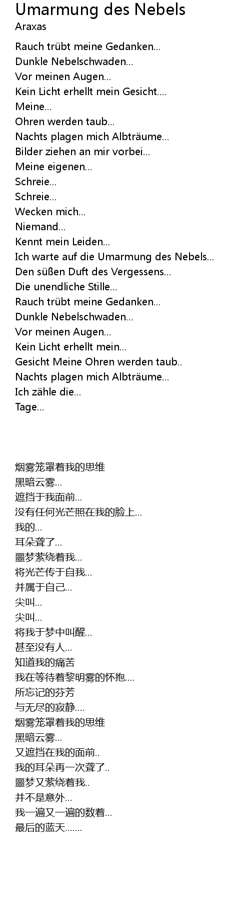| [05:18.395] | Ich warte auf die Umarmung des Nebels... |