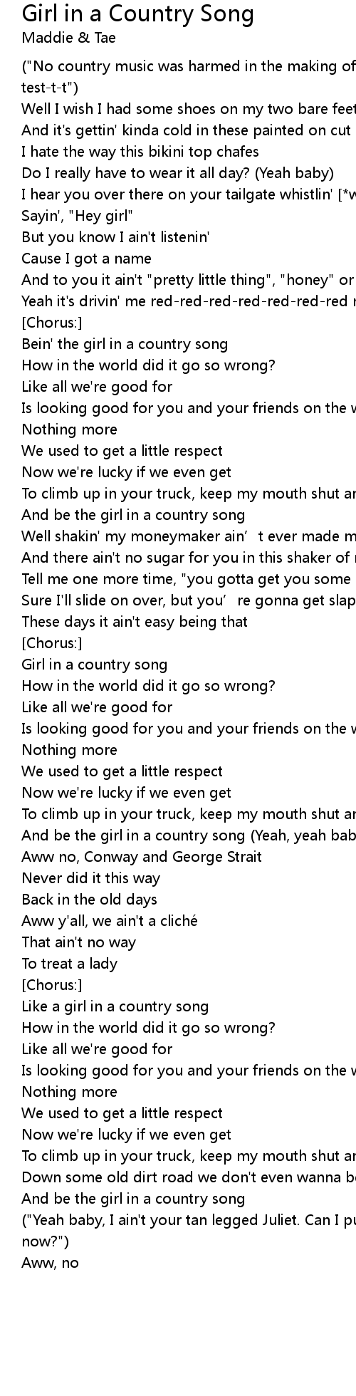 | And be the girl in a country song (Yeah, yeah baby) | |
