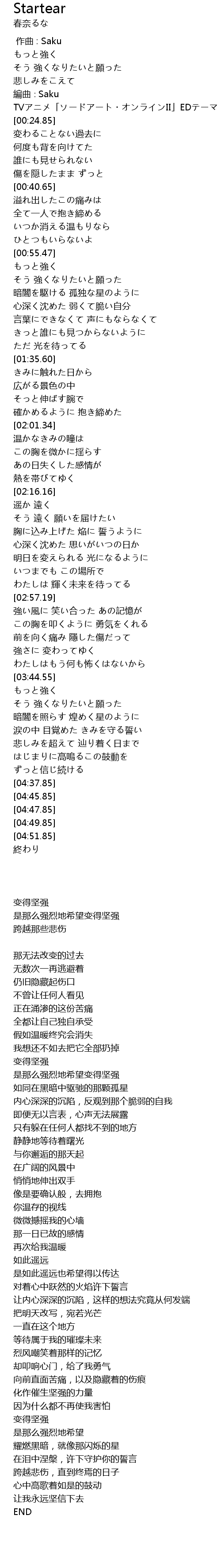 | [00:21.85] | TVアニメ「ソードアート・オンラインII」EDテーマ |