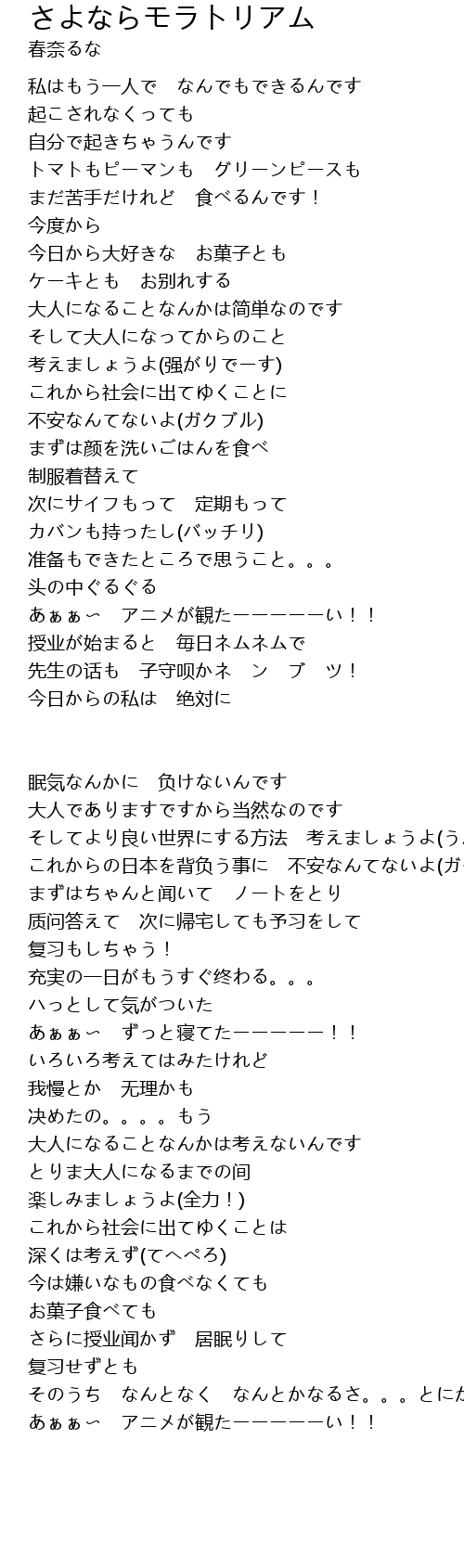 | Song | さよならモラトリアム |