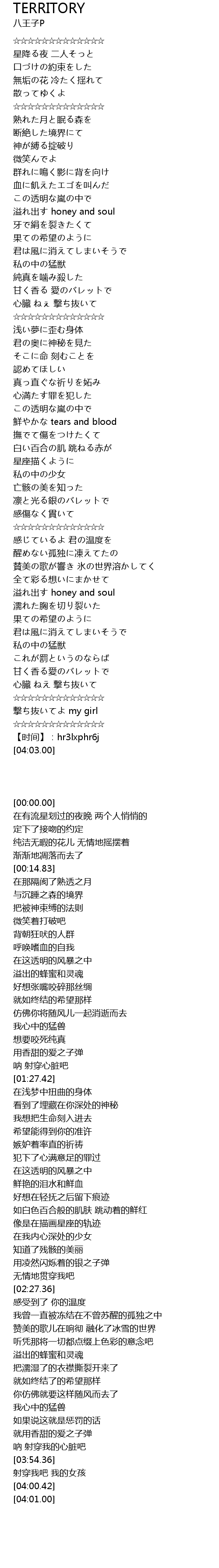 | [03:54.36] | ☆☆☆☆☆☆☆☆☆☆☆☆☆ |