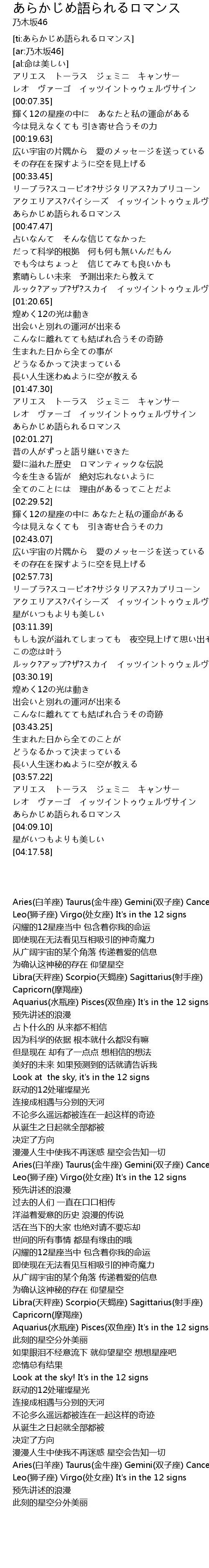 | [00:00.00] | アリエス トーラス ジェミニ キャンサー |