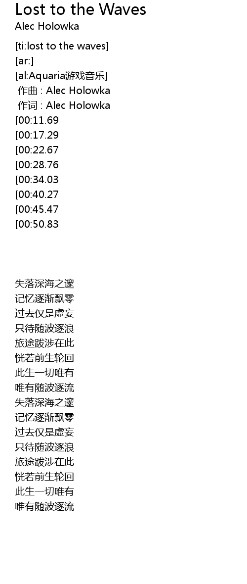 | [02:40.55][00:50.83] | Was lost to the waves |