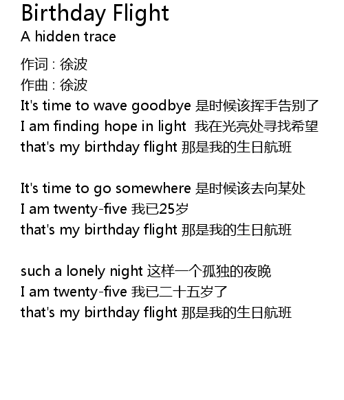 | that' s my birthday flight na shi wo de sheng ri hang ban |