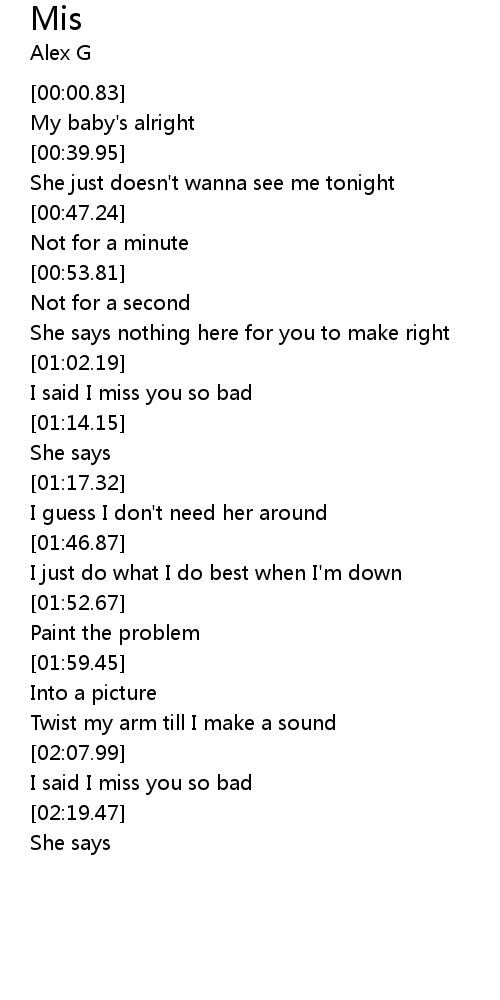 | [00:41.87] | She just doesn't wanna see me tonight |