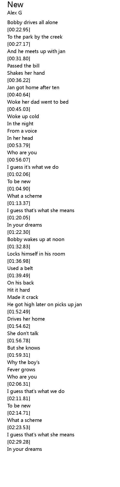 | [00:19.29] | Bobby drives all alone |
