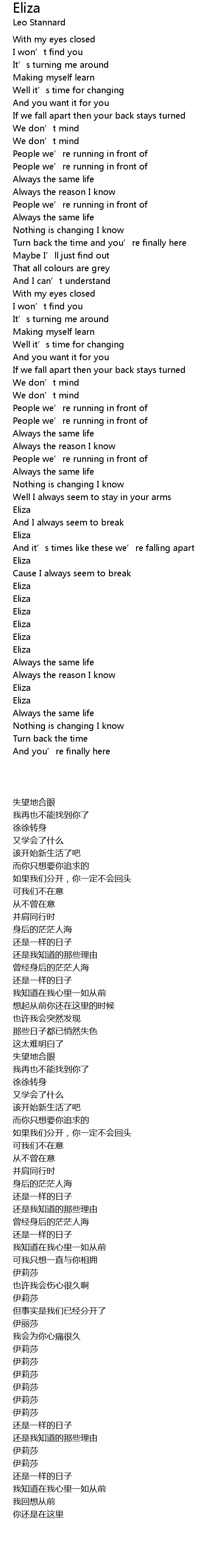 | Song | Eliza |
