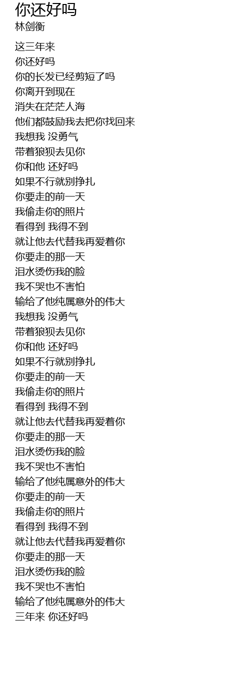 | [04:24.81] | sān nián lái nǐ hái hǎo ma |