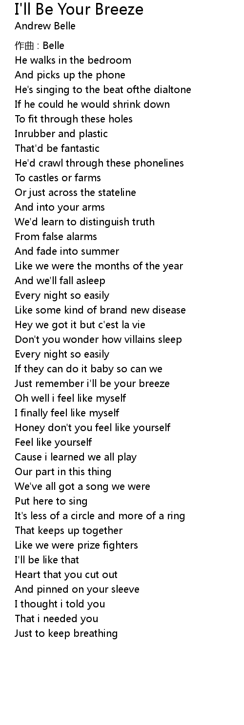 | Just remember i' ll be your breeze | |