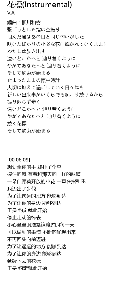| [00:54.84] | 咲いたばかりの小さな花に導かれていくままに |