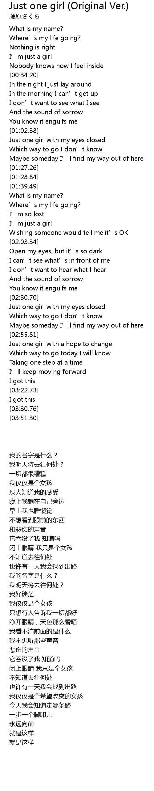 | [01:58.02] | Wishing someone would tell me it’s OK |
