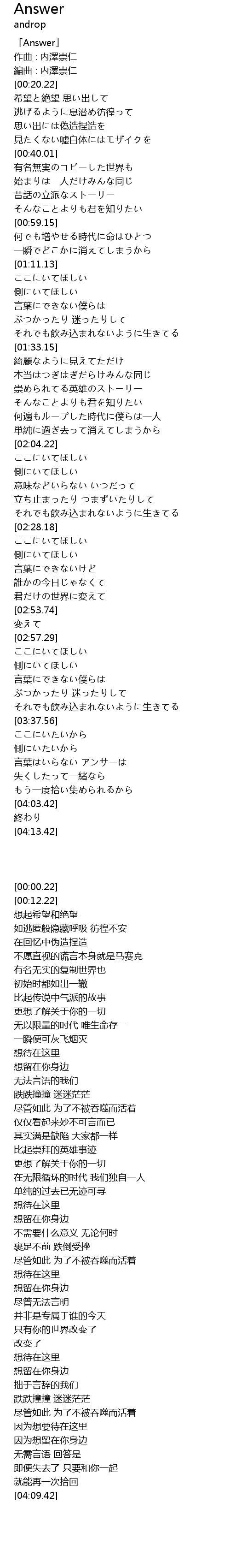 | [00:00.22] | 「Answer」 |