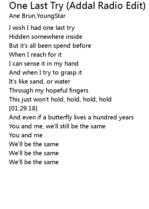 | [00:48.04] | I wish I had one last try |