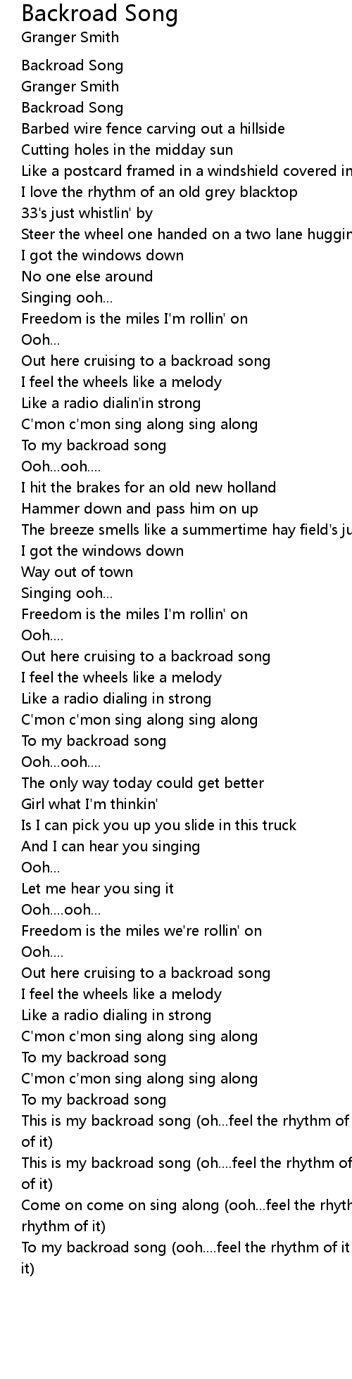 This is my backroad song (oh....feel the rhythm of it feel the rhythm of it) |