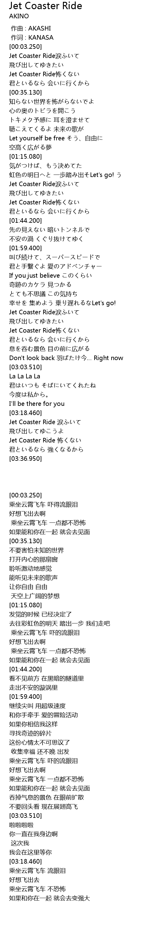| [02:35.430] | Jet Coaster Ride涙ふいて |