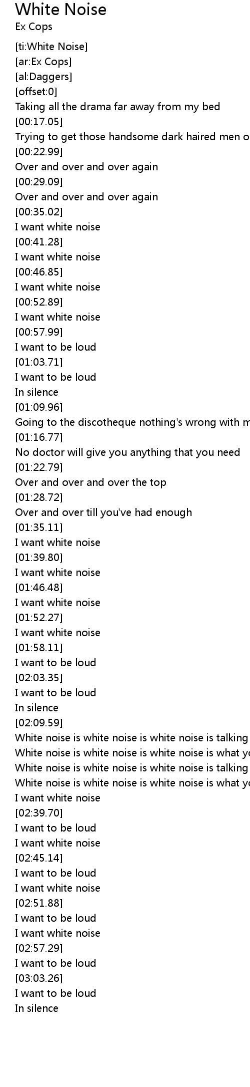 | [02:17.76] | White noise is white noise is white noise is what you mean to me |
