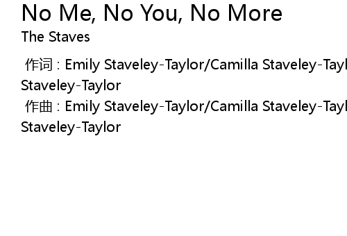 | [00:00.000] | zuo ci : Emily StaveleyTaylor Camilla StaveleyTaylor Jessica StaveleyTaylor |