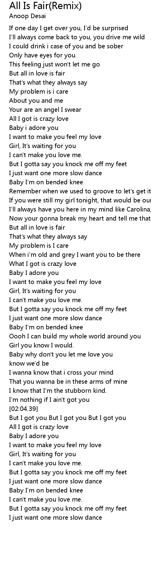 But all in love is fair |