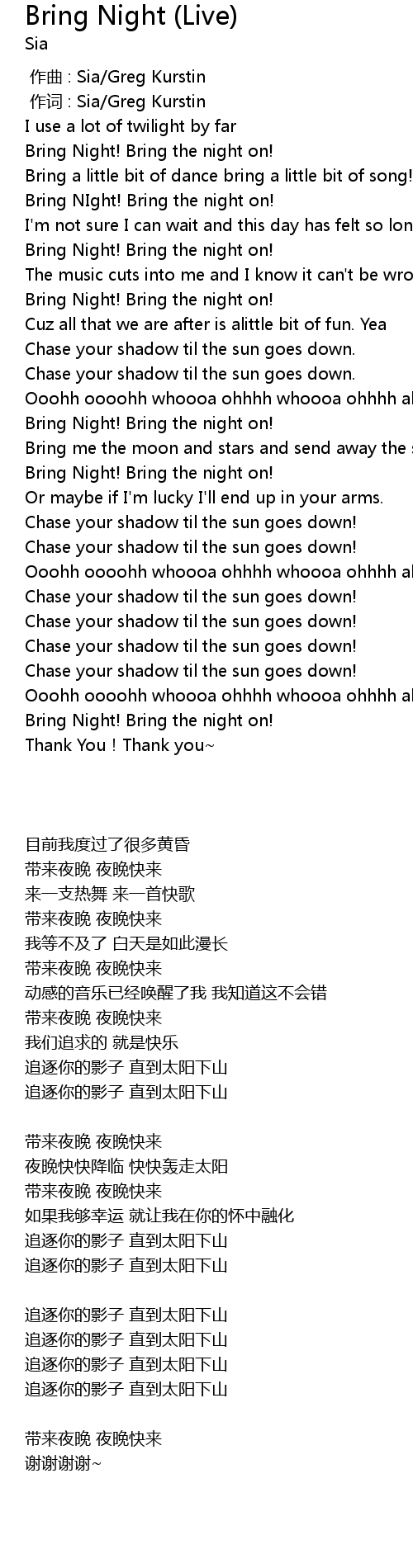 | [00:13.646] | Bring NIght! Bring the night on! |