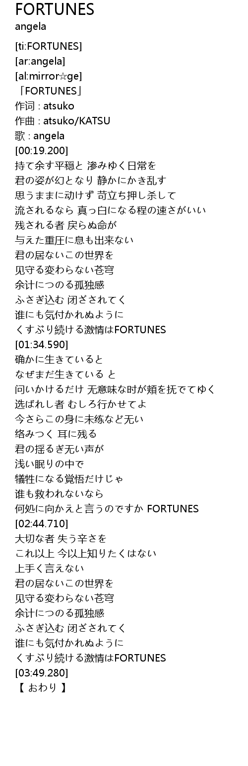 | [03:37.410] | くすぶり続ける激情はFORTUNES |