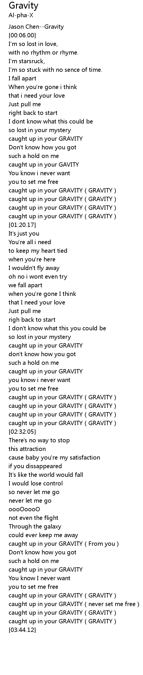 | [01:01.59] | caught up in your GRAVITY GRAVITY |