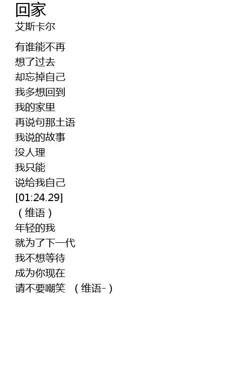 | [02:05.94] | 请不要嘲笑 (维语-) |