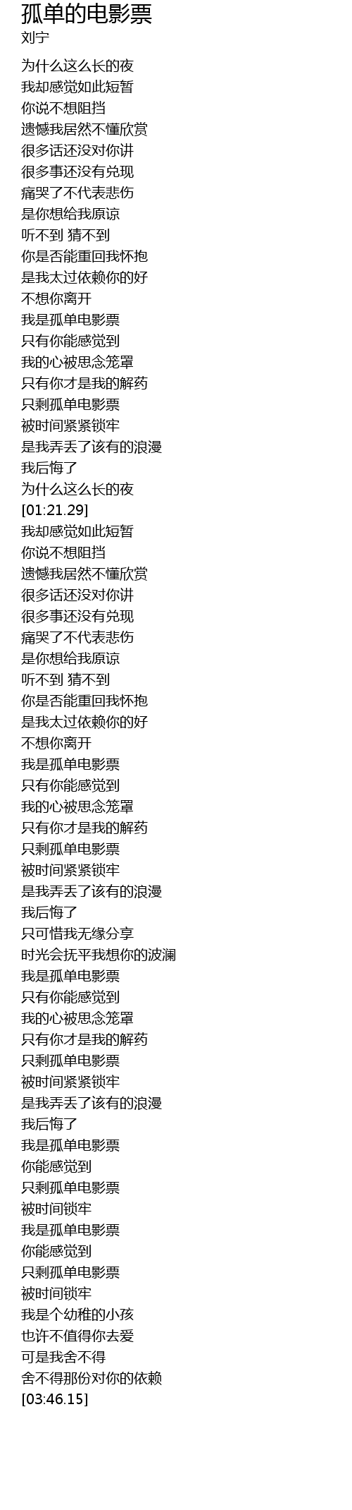 | [02:46.41] | wǒ shì gū dān diàn yǐng piào |