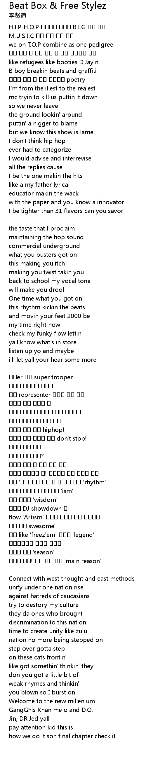 | Song | Beat Box & Free Stylez |
