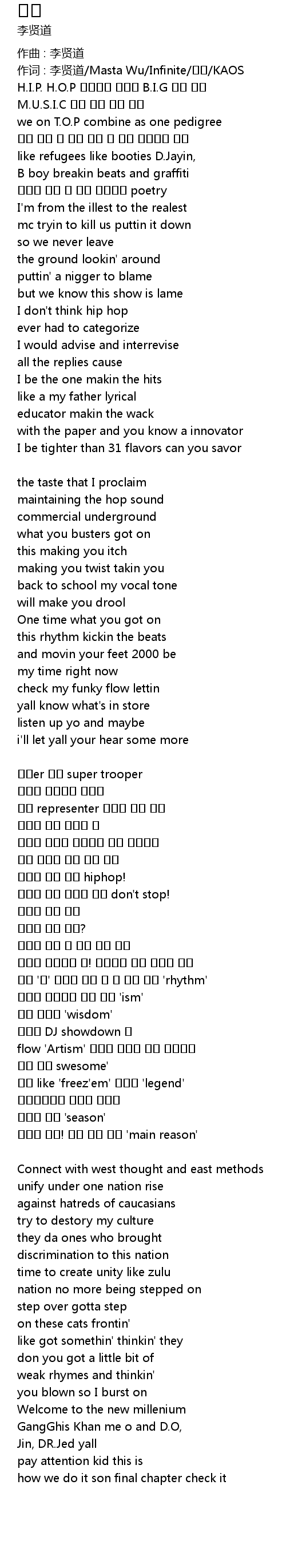 | 作词 : 李贤道/Masta Wu/Infinite/제드/KAOS | |