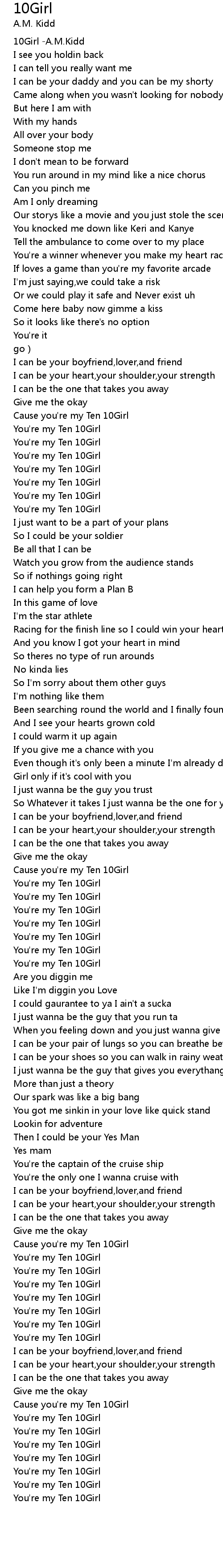 | [01:08.401] | You're my Ten 10Girl |