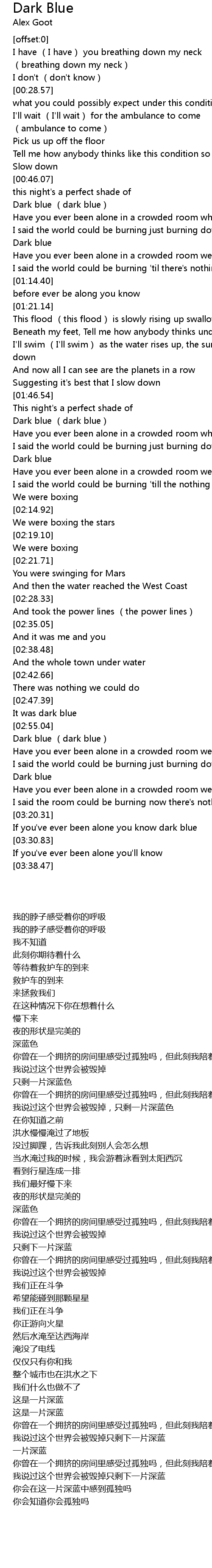| [00:50.19] | Dark blue dark blue |