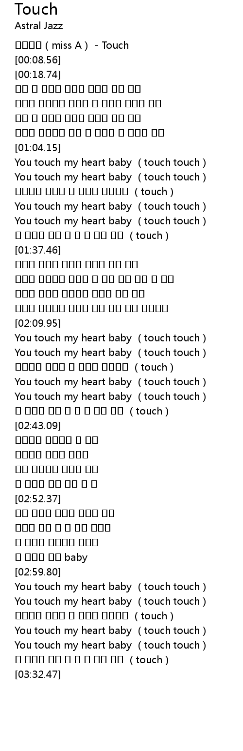 | [00:00.12] | 미쓰에이(miss A) - Touch |