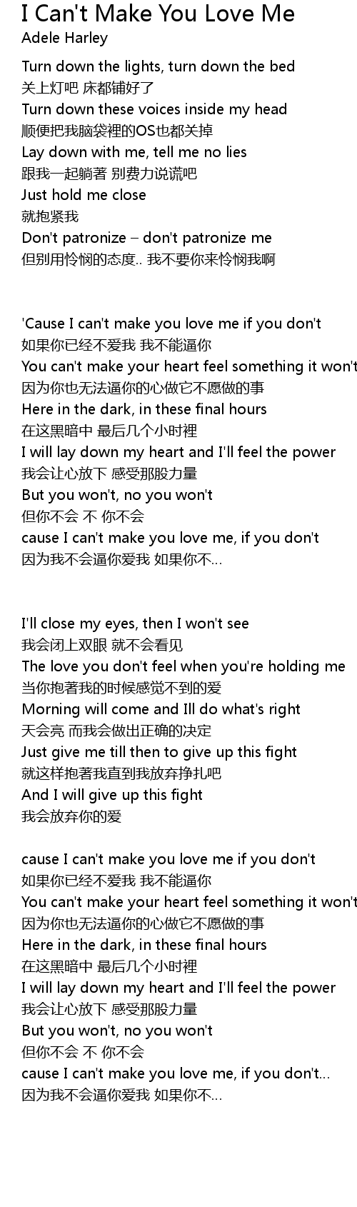 | ' Cause I can' t make you love me if you don' t | |