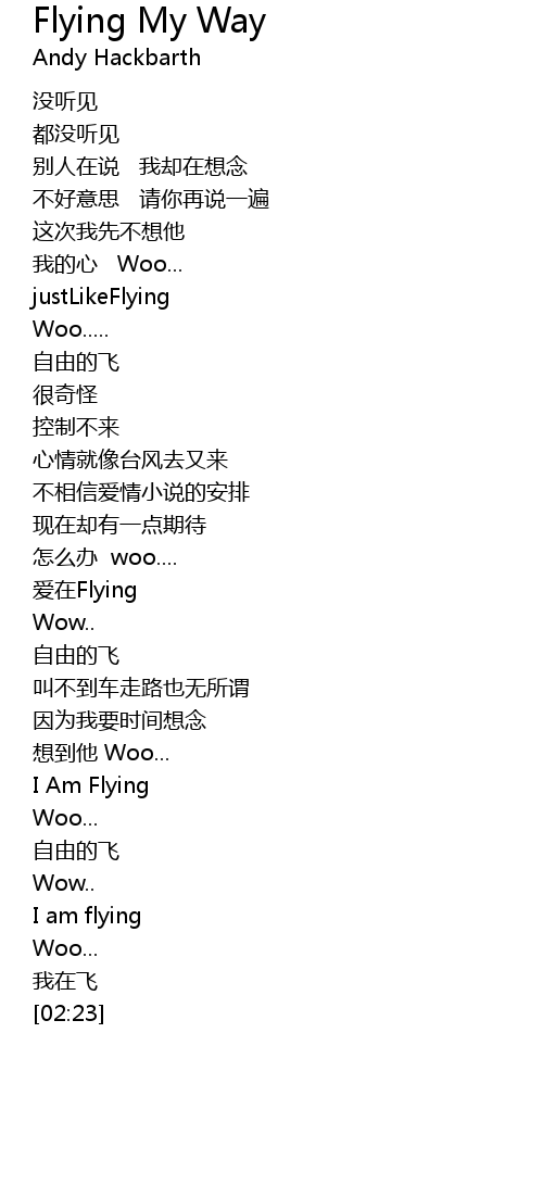 | [02:19] | wǒ zài fēi |