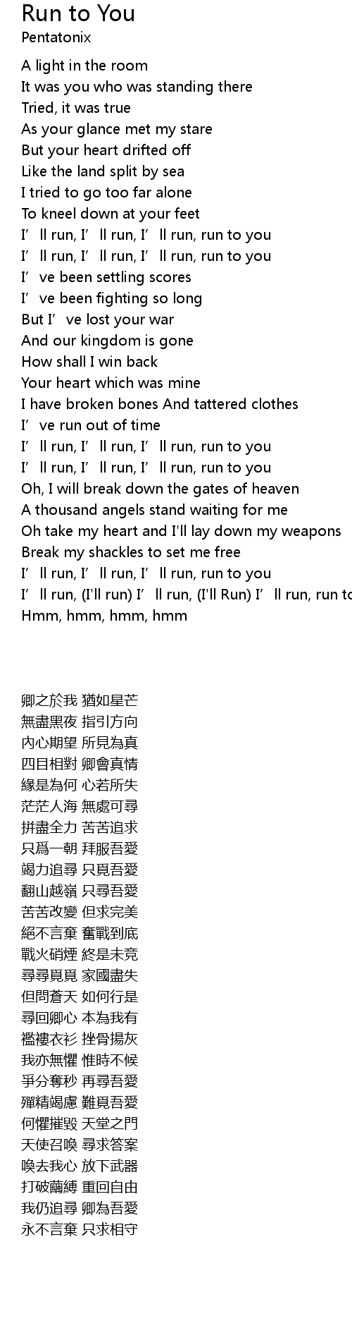 | [03:40.38] | I’ll run, (I'll run) I’ll run, (I'll Run) I’ll run, run to you |