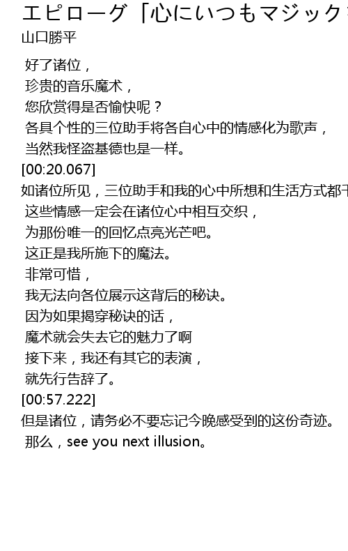 | [01:02.420] | 那么,see you next illusion。 |
