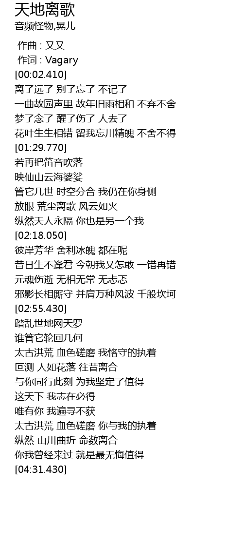 | [03:59.780] | 太古洪荒 血色磋磨 你与我的执着 |