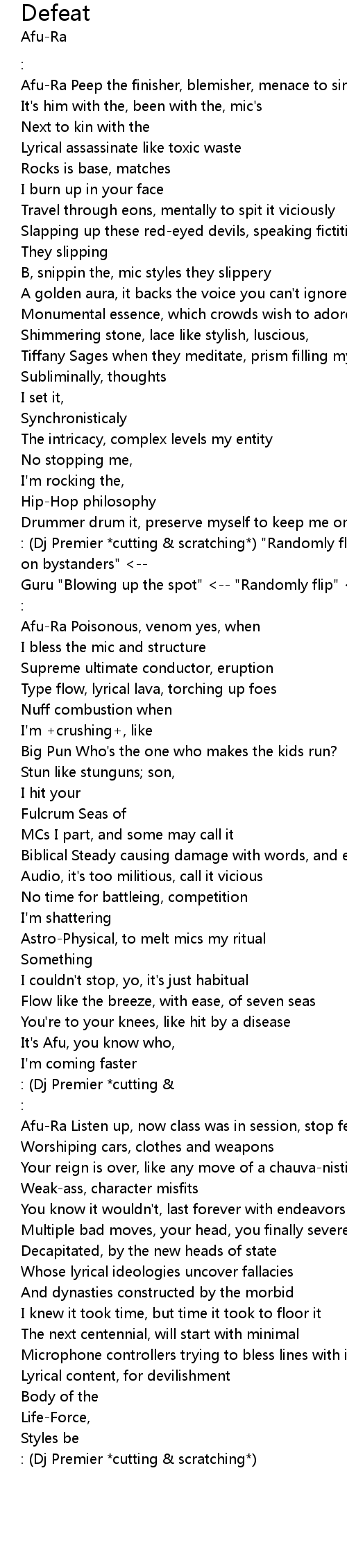 I keep it flowing [Chorus]: (Dj Premier *cutting & scratching*) "Randomly flip on bystanders" <-- |