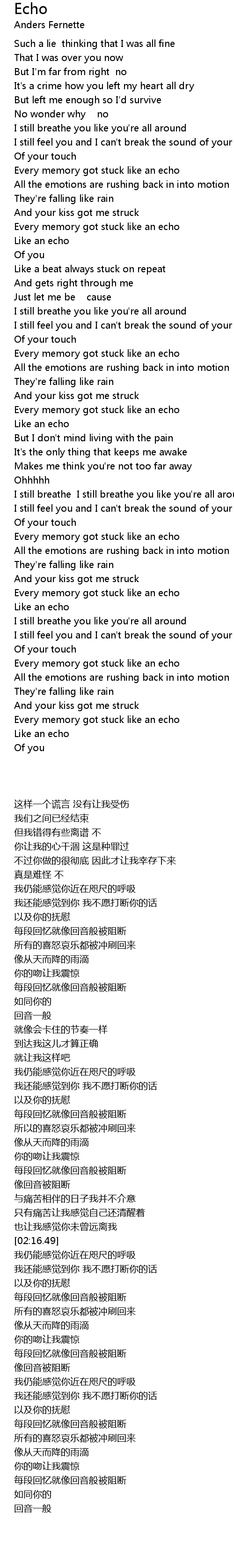 Every memory got stuck like an echo |
