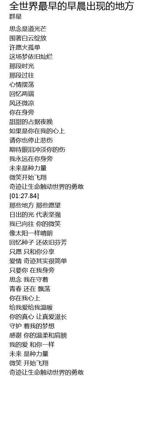 | [01:20.29] | 奇迹让生命触动世界的勇敢 |