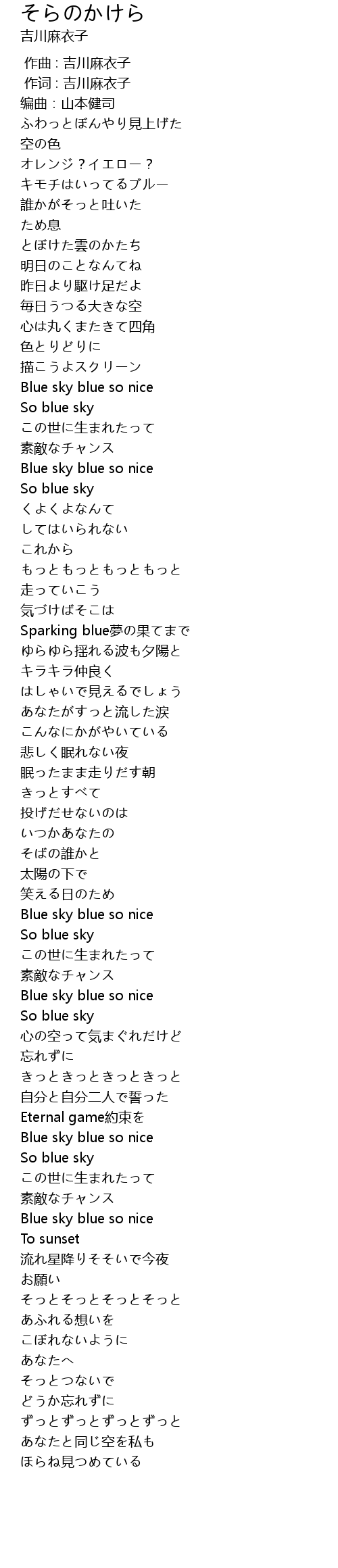 | [00:01.00] | 作词 : 吉川麻衣子 |