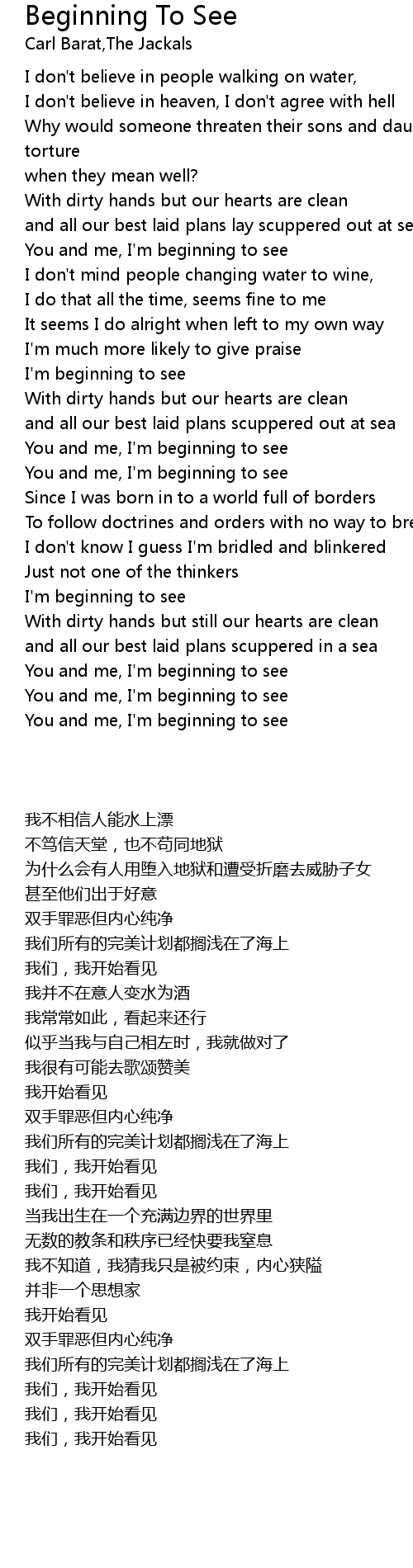 Beginning To See Lyrics